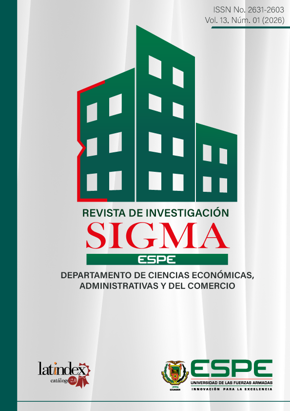 La revista de investigación SIGMA, publica artículos enmarcados en las áreas de Economía, Administración, Contabilidad y Finanzas. Cuenta con la evaluación realizada por pares académicos de prestigiosas universidades nacionales e internacionales. El público a quien está dirigida la revista son científicos, académicos/as, profesionales y estudiantes vinculados a las Ciencias Económicas, Administrativas, Contables y Financieras. Actualmente se encuentra indexada en LATINDEX Catálogo 2.0, ROAD, está adherida a la Red Latinoamericana de Revistas Académicas en Ciencias Sociales y Humanidades de FLACSO Sede Argentina, Índice Internacional de Revistas Actualidad Iberoamericana de la Universidad La Serena de Chile, es parte de DORA, está registrada en Google Schoolar y preserva las publicaciones digitales en el Repositorio digital de la Universidad de las Fuerzas Armadas ESPE"